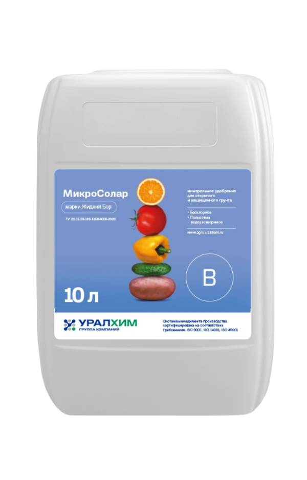 MicroSolar Liquid Boron is a highly concentrated liquid micronutrient fertilizer designed for the rapid correction of boron deficiency in a wide range of agricultural crops. The boron in this formulation is present in a highly bioavailable organic form (boron ethanolamine), ensuring fast absorption through the leaf surface and efficient translocation within the plant.
